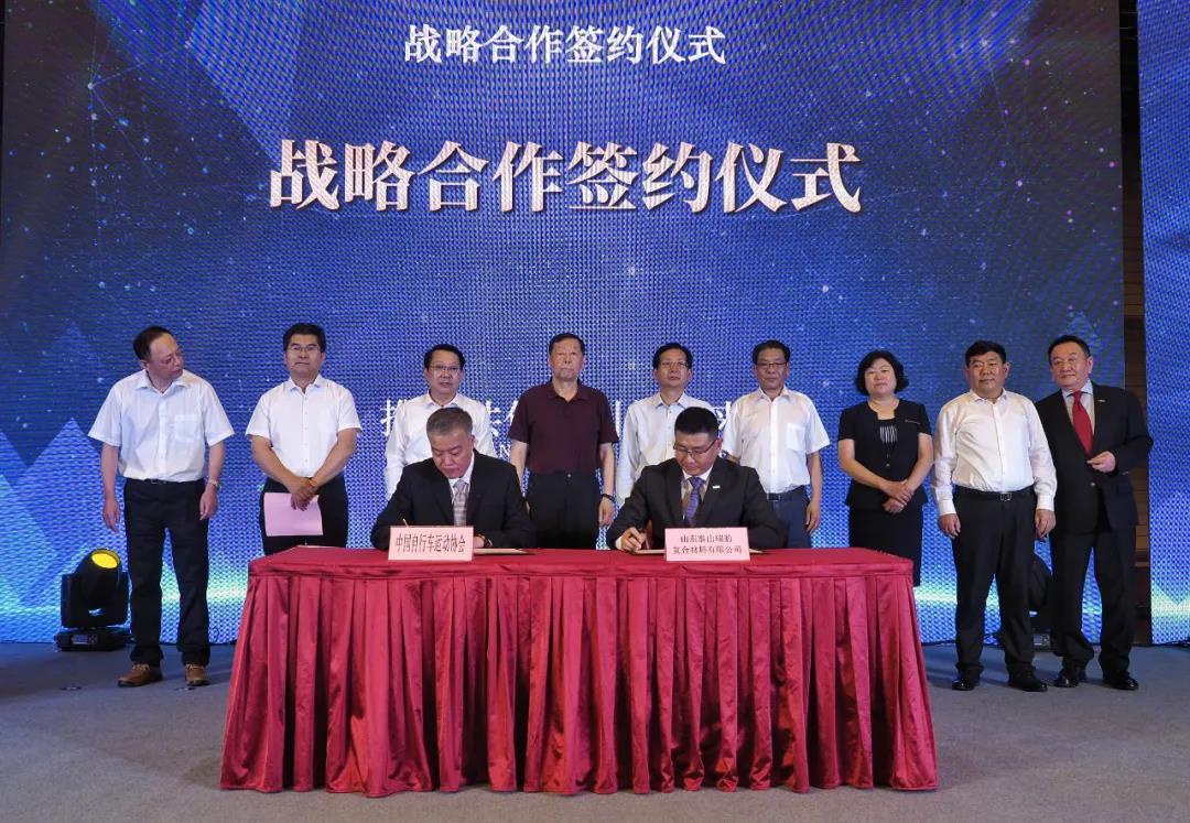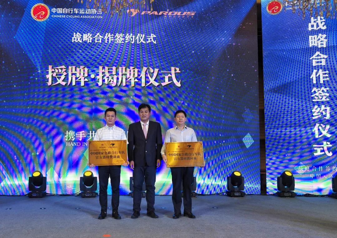 山东省政府办公厅副主任张连三、中国自行车运动协会秘书长孙为民共同为“中国自行车运动协会战略合作伙伴”揭牌。